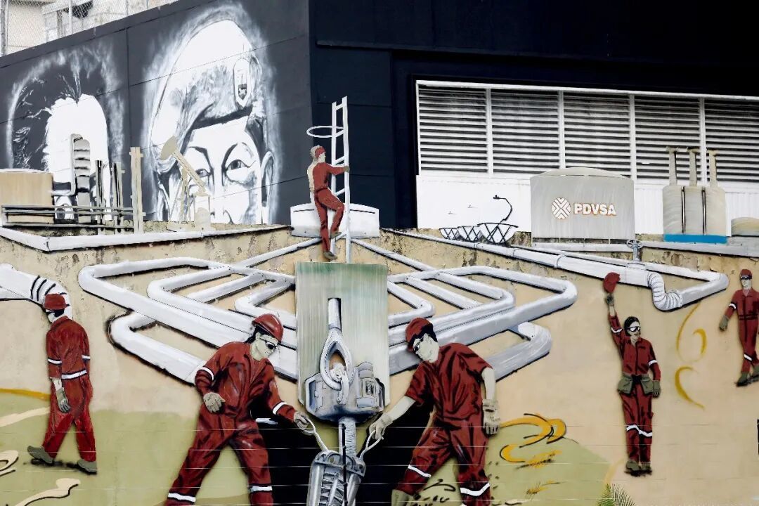 上图:委内瑞拉国有石油公司总部附近描绘该公司石油工人的宣传画展板。图/IC